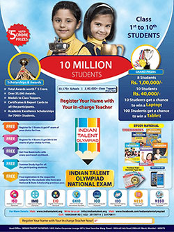 National Olympiad exam is conducted by Indian Talent Olympiad. It is an exam that welcomes students from different schools, boards and states to compete at one platform. Some of the subjects in which students can participate are International Science Olympiad (ISO), International Maths Olympiad (IMO), English International Olympiad (EIO), General Knowledge International Olympiad (GKIO), International Computer Olympiad (ICO), International Drawing Olympiad (IDO), National Essay Olympiad (NESO), and National Social Studies Olympiad (NSSO). Students can participate in any or all of these subjects as per their choice. Such exams bring out true potential of students. It gives them a lot of confidence to attempt any competitive exam in their future. It prepares them to face other challenges as well.